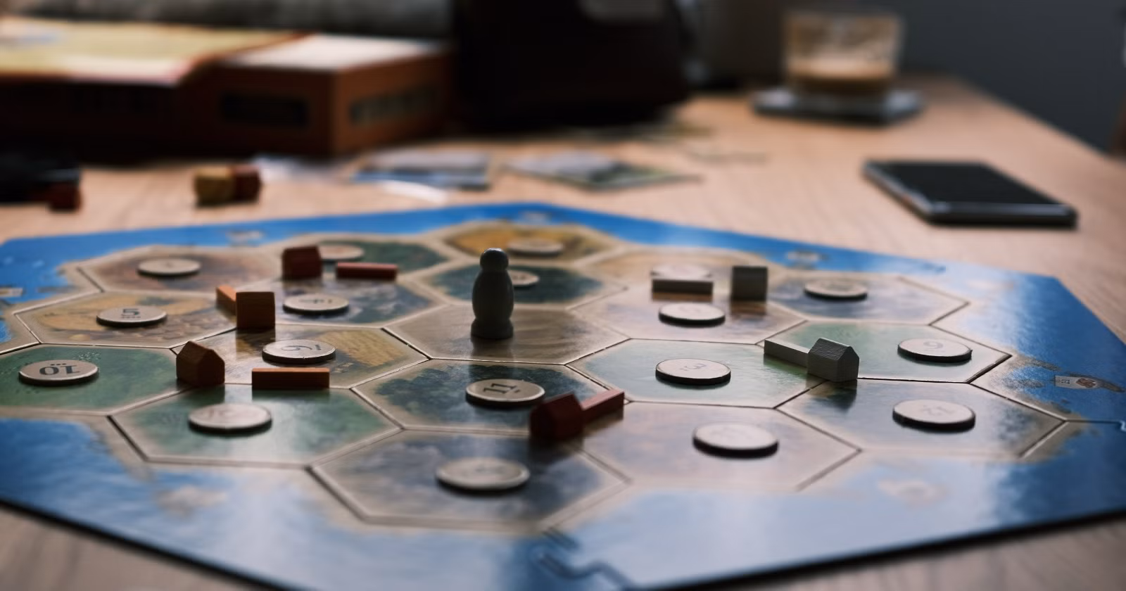 Catan, previously known as Settlers of Catan, is a tremendously popular board game where players take on the role of people settling a new land. They must build roads and establish communities using resources like wood and wheat, trading with other players (or not) to take over as much of the board as possible. Buy it yourself to see what the fuss is about.