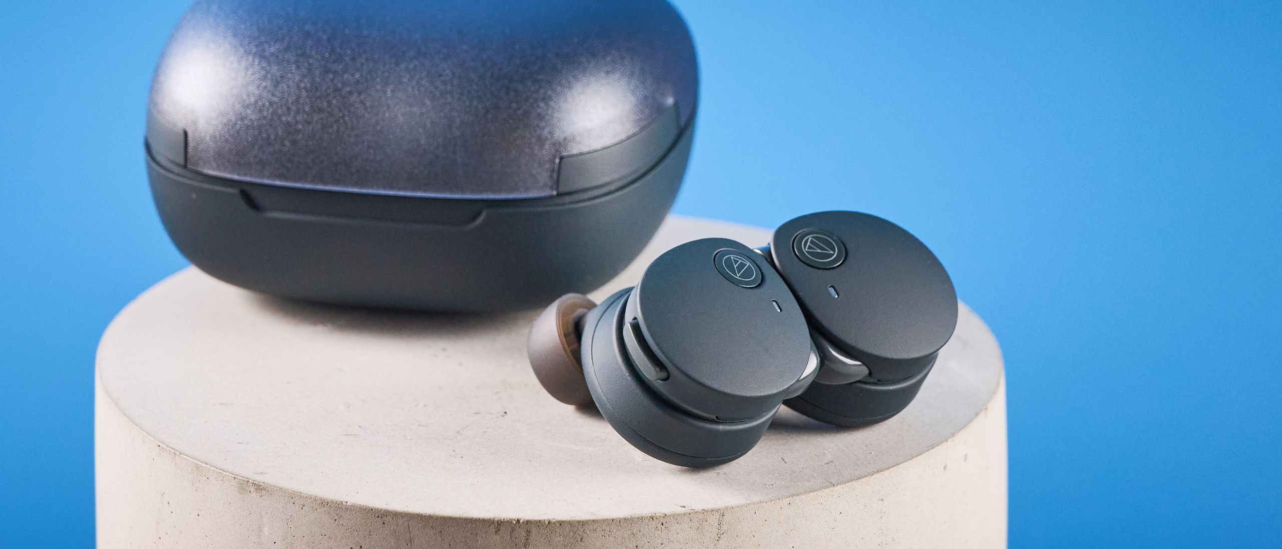 The Audio-Technica ATH-CKS50TW2 earbuds look great and seriously impressed me with their comfort, despite being a little heavier than other buds of similar shape and style, such as the Bose QuietComfort earbuds or the Beats Studio Buds.