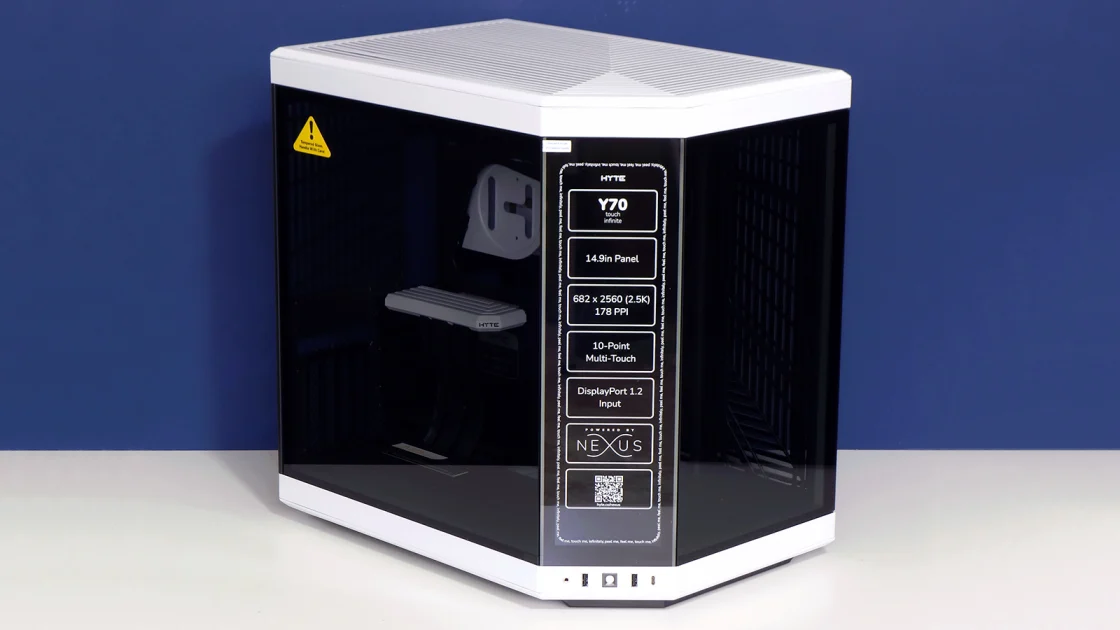 System overhead, you ask? While the viewable area increases from 14.2 inches (on the original Touch) to 14.9 inches (on the Touch Infinite) and the rated peak screen brightness goes from 300 to 500 nits, the panel’s resolution goes down, from 1,100 by 3,840 pixels (Touch) to 682 by 2,560 pixels (Touch Infinite). Hyte touts the pixel reduction as a benefit to users, as it requires less from the graphics card. Now granted, we did think the original panel’s 1,100 by 3,840 was ridiculously high for what the screen is, but we won’t accept the reduction in pure marketing terms. We’ll just say that for a panel this small, we think 682 by 2,560 pixels could have sufficed from the outset.