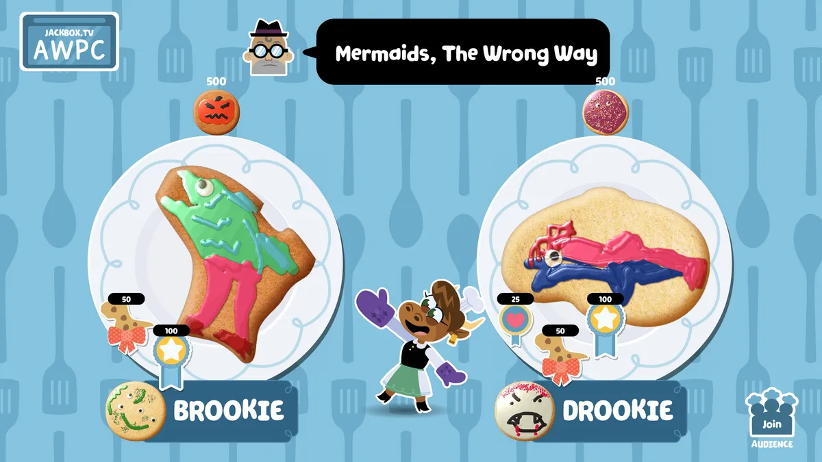 One of my favorite styles of Jackbox Games is games like Tee K.O., where you’re drawing something on your phone and matching the drawing with delectably funny titles. Cookie Haus asks you to do that by decorating cookies.
