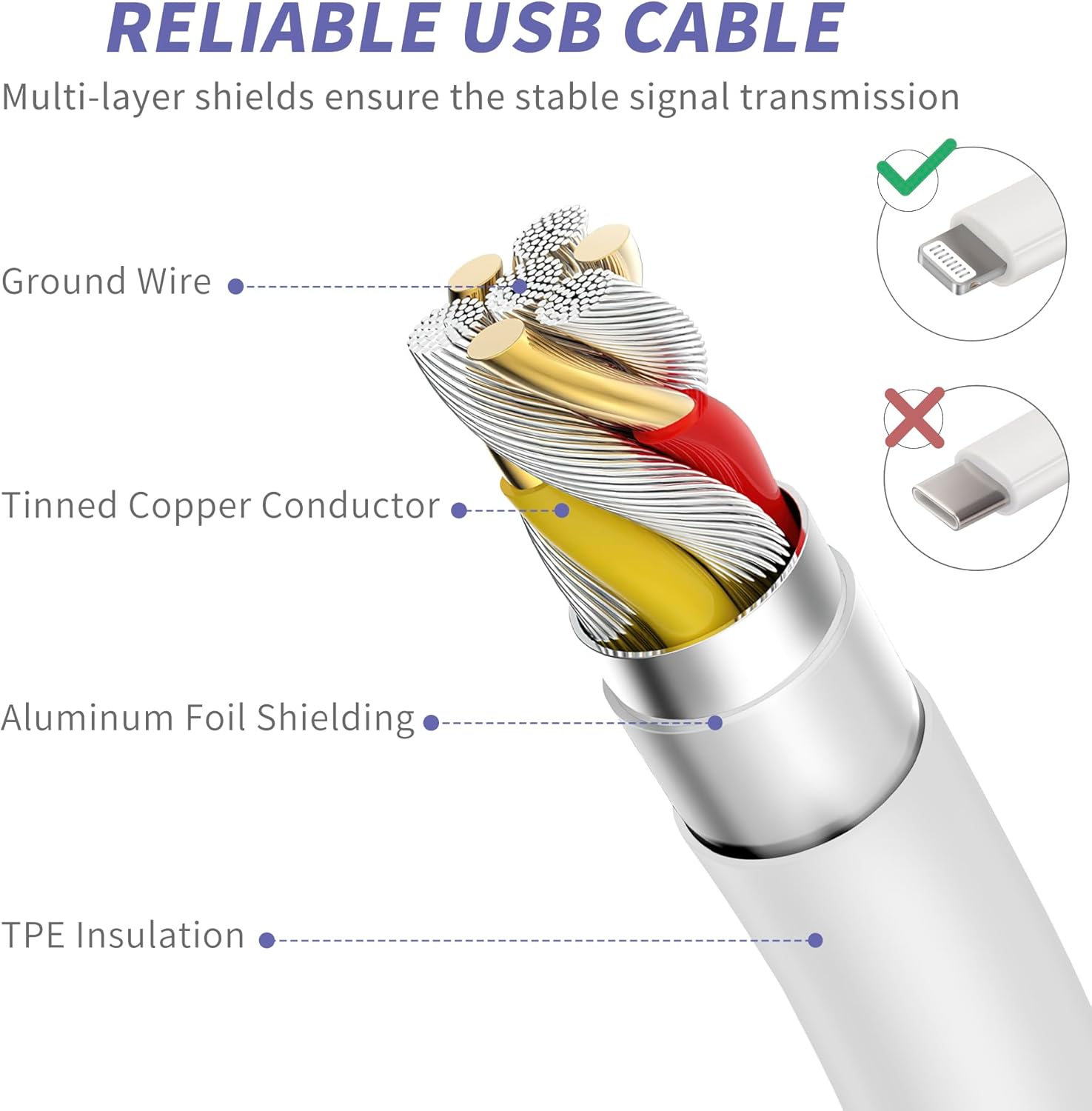 3X iPhone Fast Charger : PD 3.0 20W USB-C charger with 6ft type c to lightning cord, charges iPhone 11 12 13 14 up to 60% in just 30 minutes, which saves more than 1 hour for you, when compared to the 5W original charger.