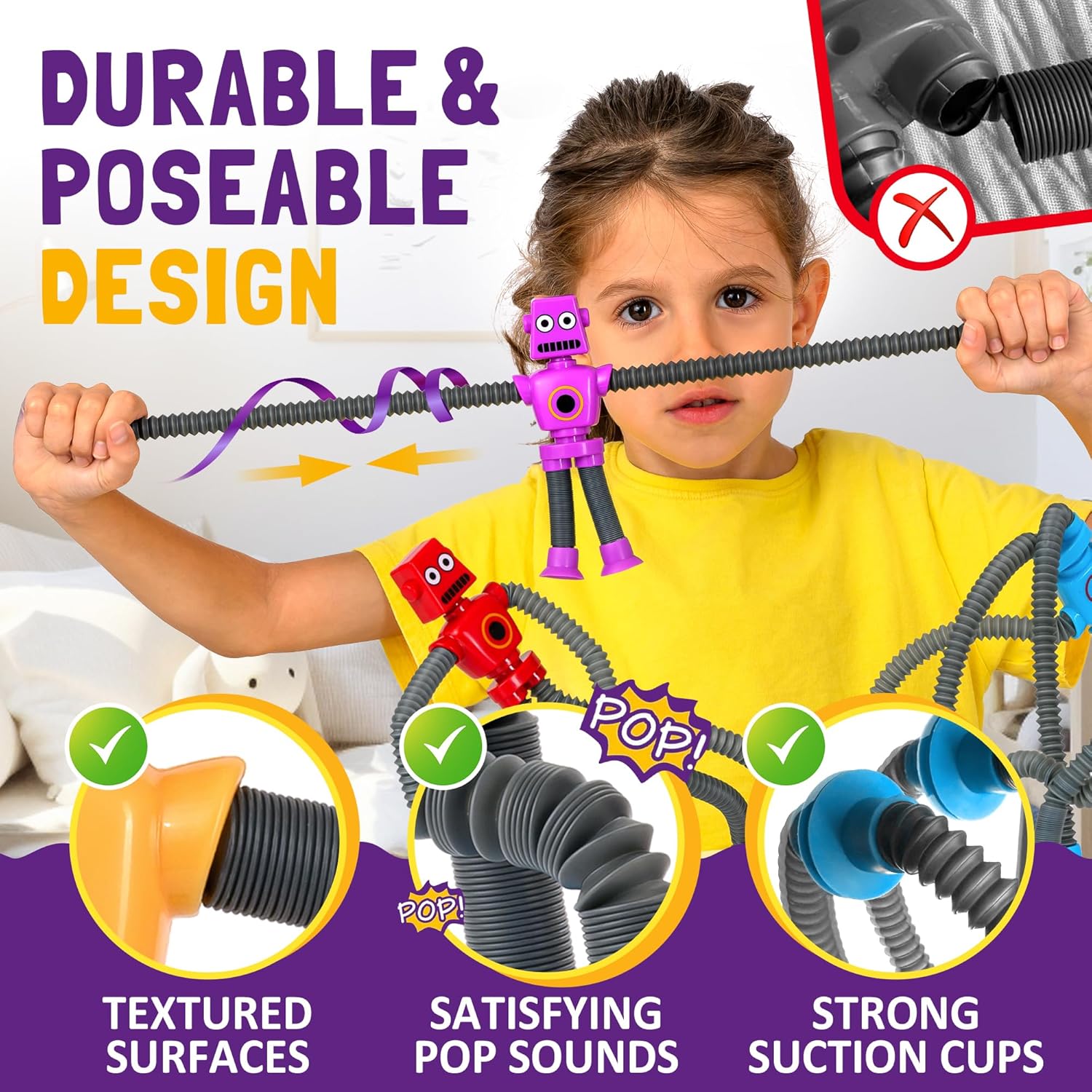 ✈️ UNIQUE TRAVEL & ROAD TRIP TOYS FOR ALL AGES – Robot figurines make top notch road trip essentials for toddlers & children of all ages 3 4 5 6 7 8 9 10 11 12 13 14 year old; The kids will love playing with these cool telescopic robots on an airplane flight or in the back car seat; Pop Tubes sensory toy are traveling with toddlers must haves;