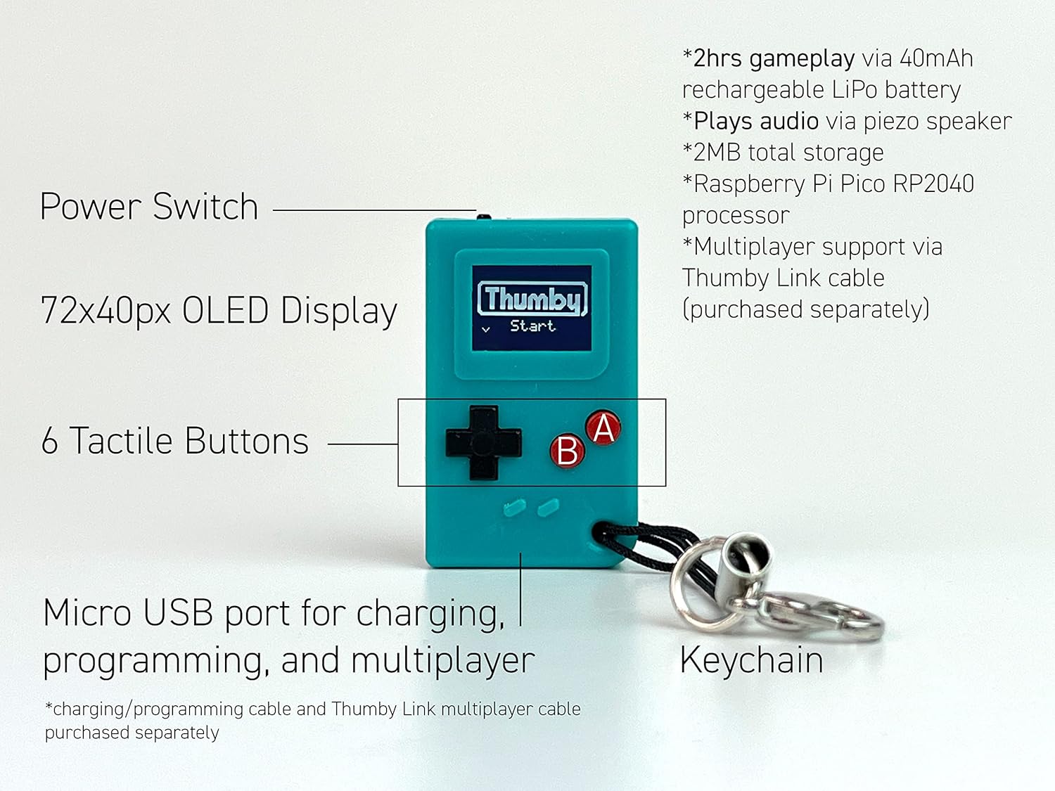 MULTIPLAYER FUN WITH FRIENDS – Link two Thumby consoles (cable sold separately) for simple, shared gameplay like Pong or Tennis.