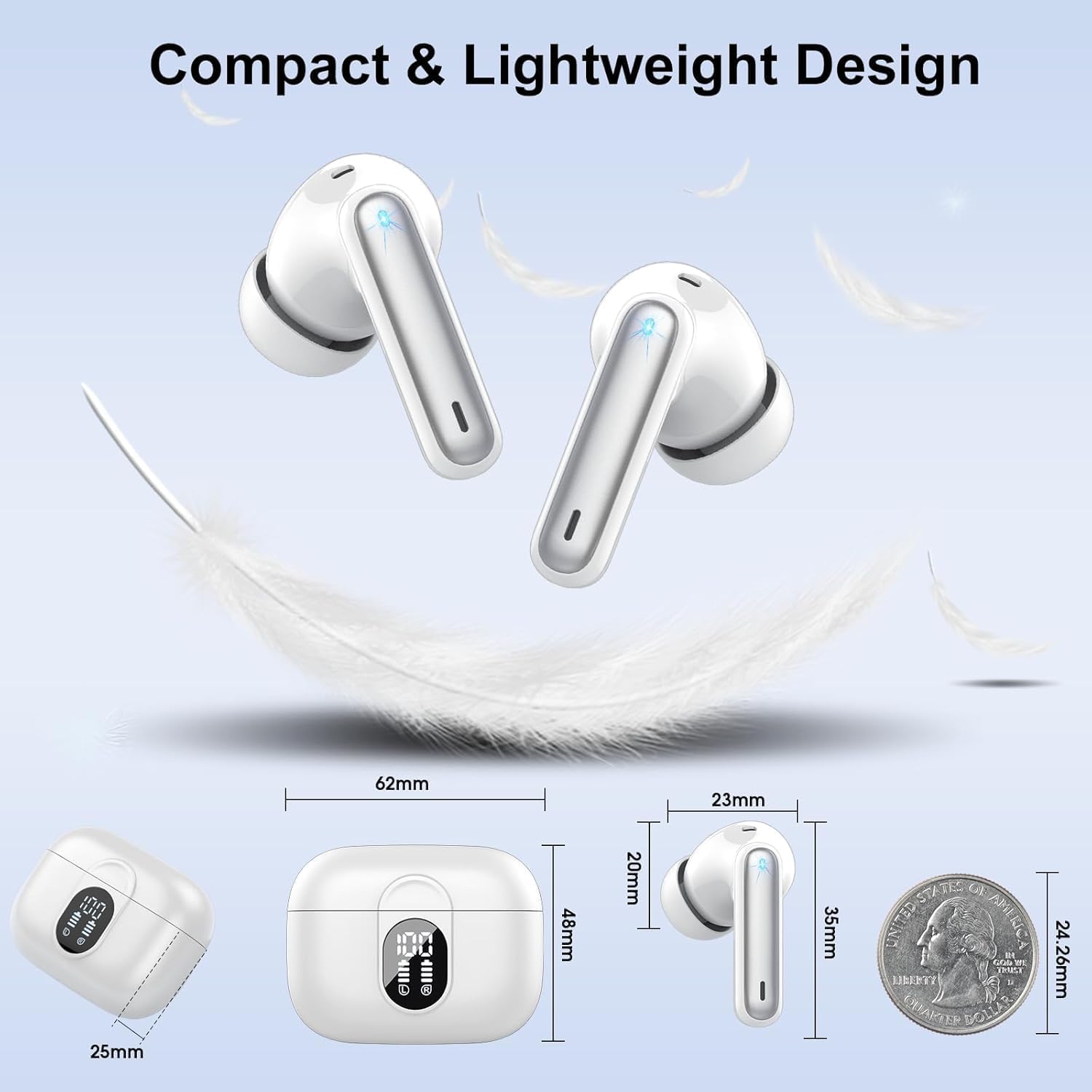 ✅40 hour total battery life and real-time battery display, say goodbye to anxiety:Power through your week with confidence. Enjoy up to 8 hours of playtime on a single charge, and a massive total of 40 hours with the compact, pocket-sized charging case. The smart LED power display shows the exact remaining battery percentage for both the earbuds and the case at a glance, so you’re never left guessing.