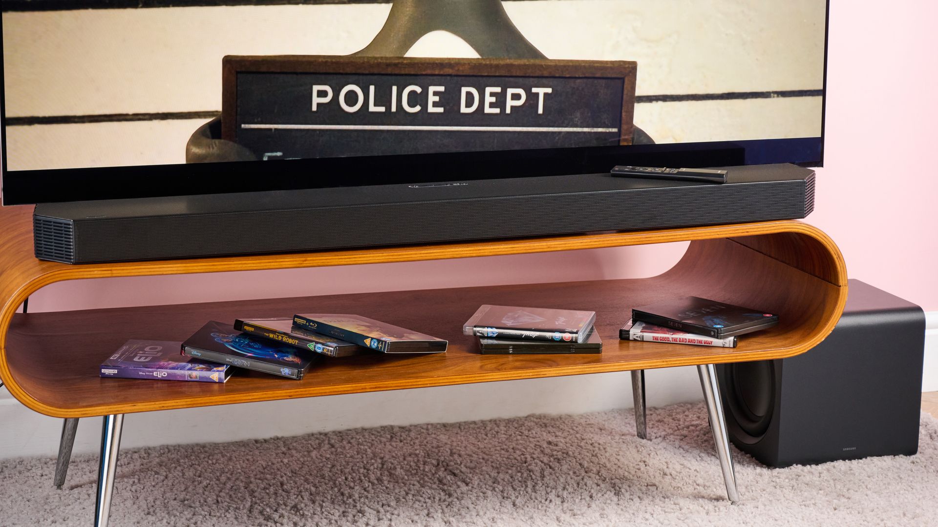 This time out, Samsung’s added Moderate Bass, though, which disables the sub and lets the main soundbar pick up those low frequency sounds. That’s pretty handy if you’re temporarily short on space, for example.
